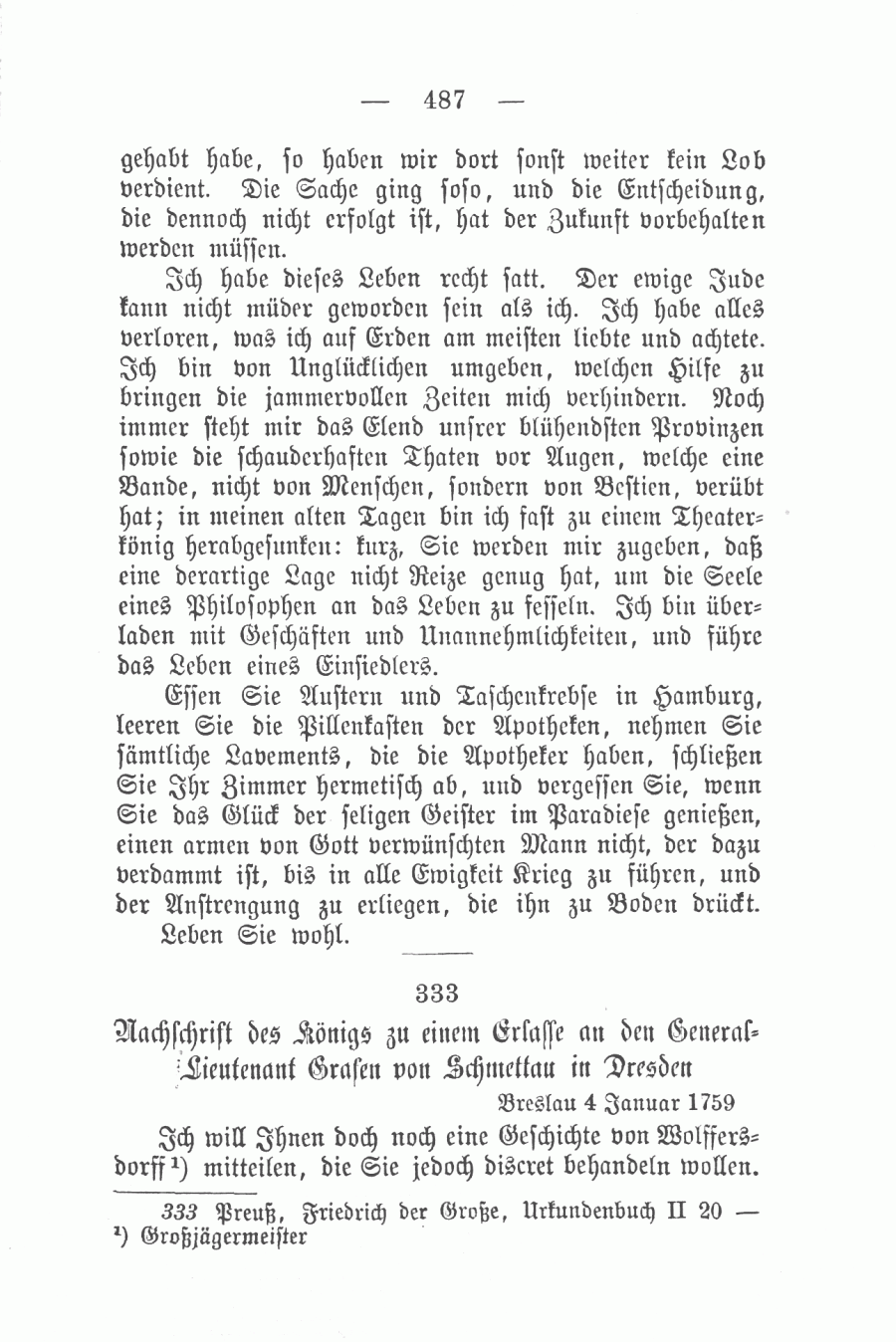 Der König an den Grafen v.Schmettau 4 Jan. 1759