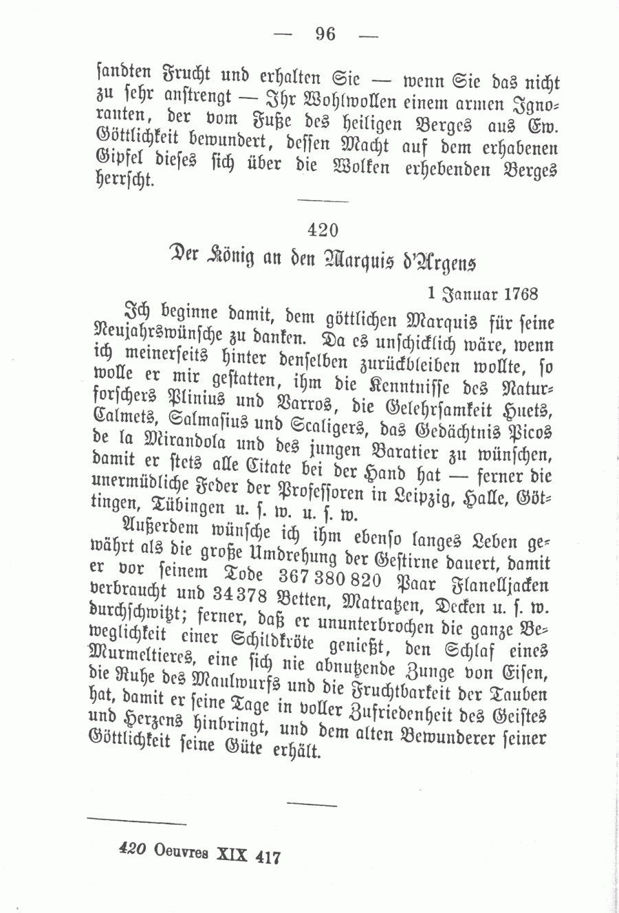 Der König an den Marquis d'Argens 1 Jan. 1768