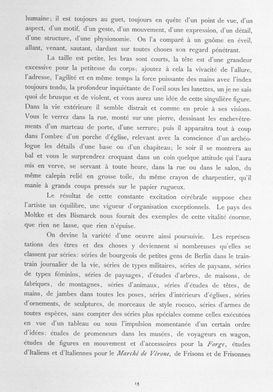 Le résultat de cette constante excitation cérébrale suppose chez l'artiste un équilibre, une vigueur d'organisation exceptionnels. Le pays des Moltke et des Bismarck nous fournit des exemples de cette vitalité énorme, que rien ne lasse, que rien n'épuise.