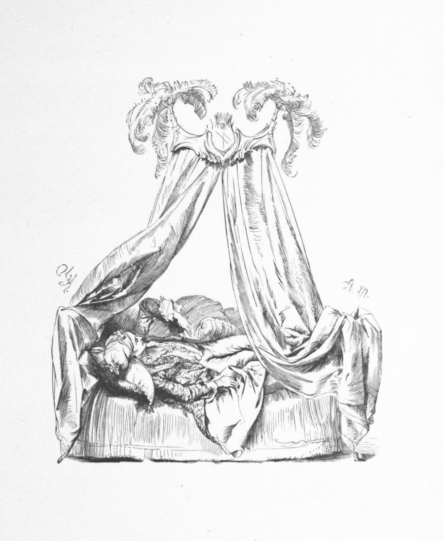 130. Vignette de l'„Épître au lit du Marquis d'Argens“. (Gravure d'Unzelmann.)