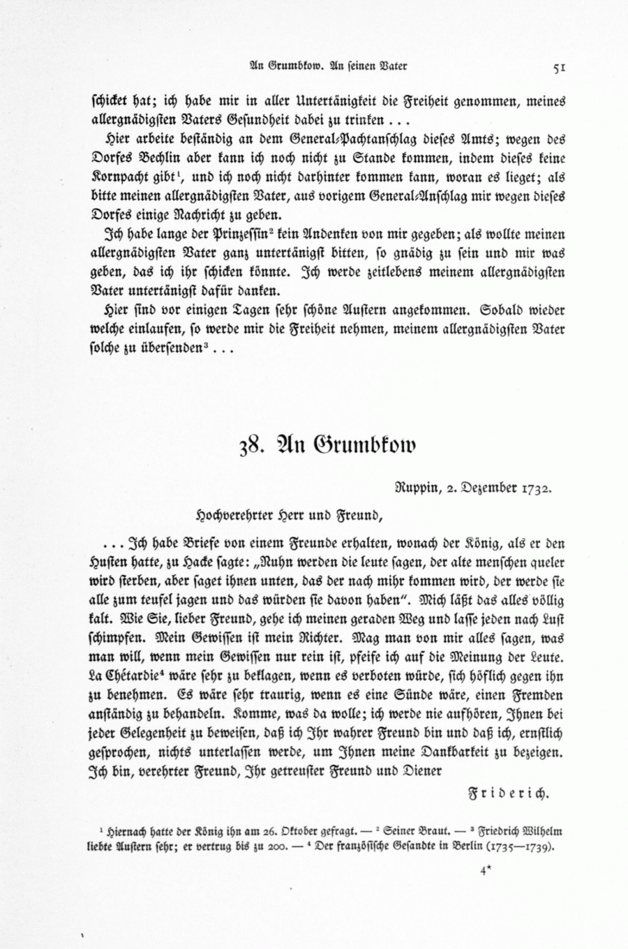 An General von Grumbkow, 2. Dezember 1732