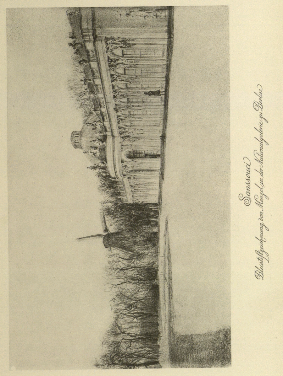 Sanssouci. Bleistiftzeichnung von Menzel in der Nationalgalerie zu Berlin.