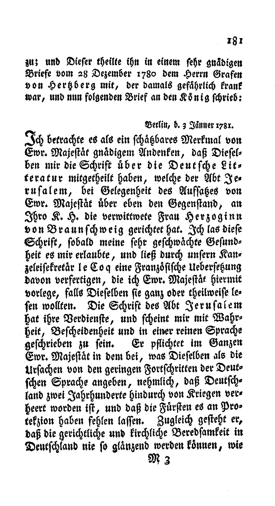 von Hertzberg an Friedrich II., Berlin, d. 3. Januar 1781