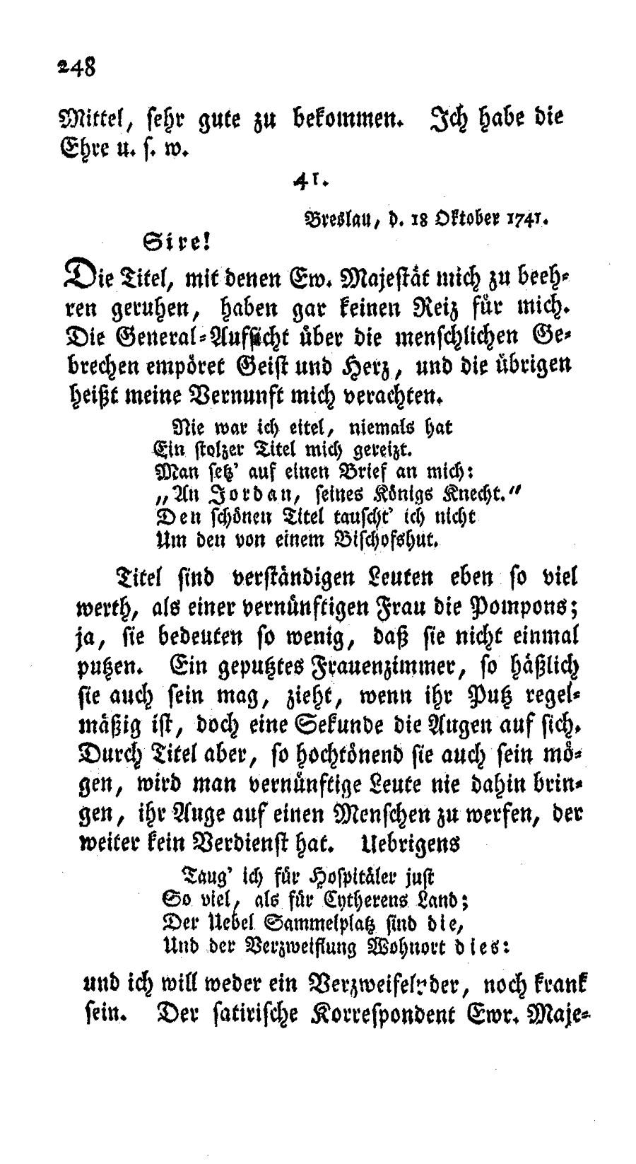 Breslau, d. 18. Oktober 1741