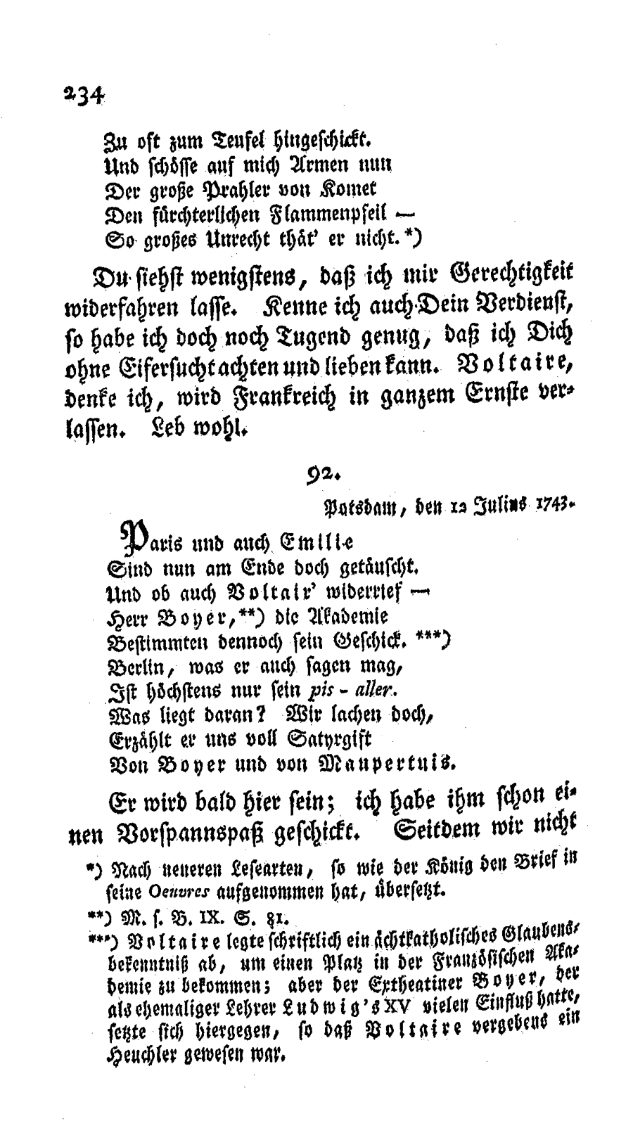 Briefwechsel. Des Königs Briefe an Jordan