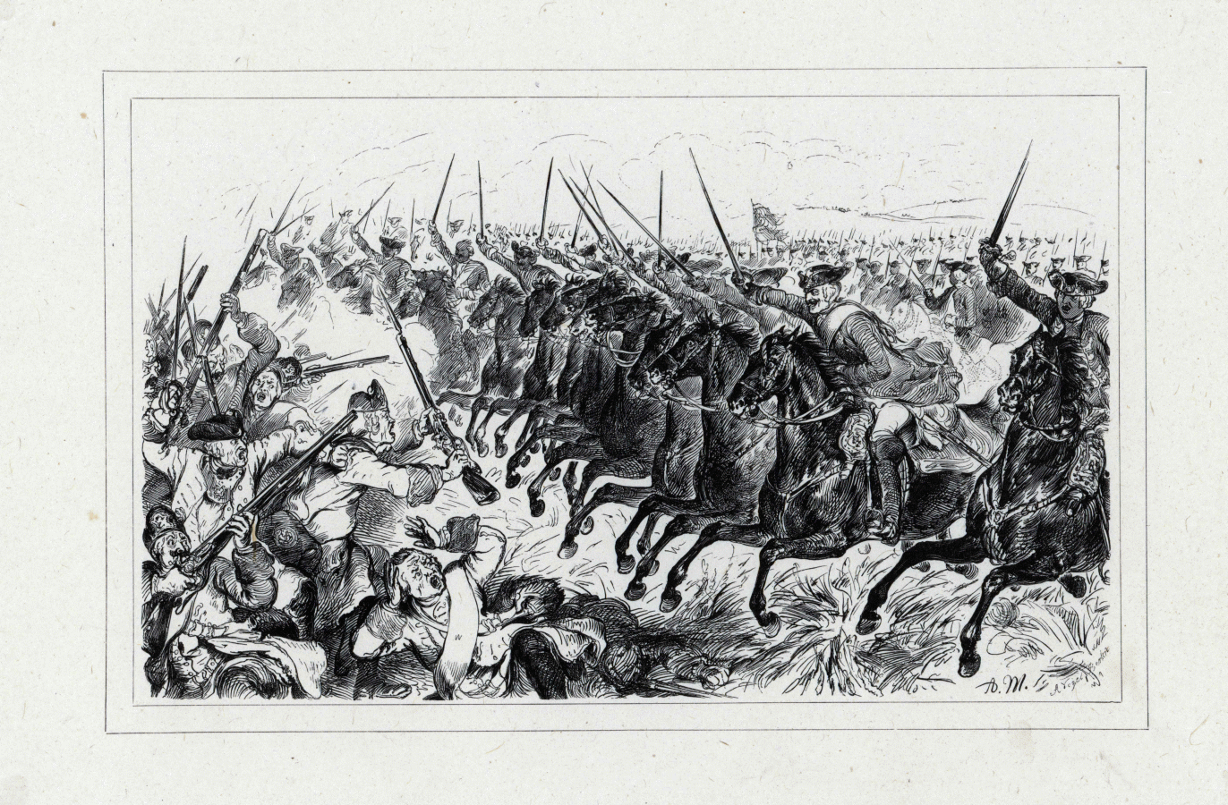 Angriff der Bayreuther Dragoner auf die österreichische Infanterie bei Hohenfriedberg