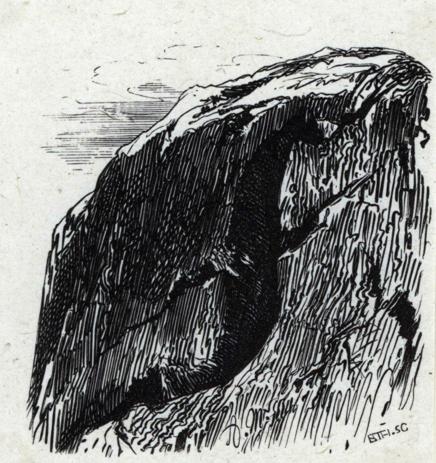 Anfangsbuchstabe F, aus Rissen in einer Felswand gebildet