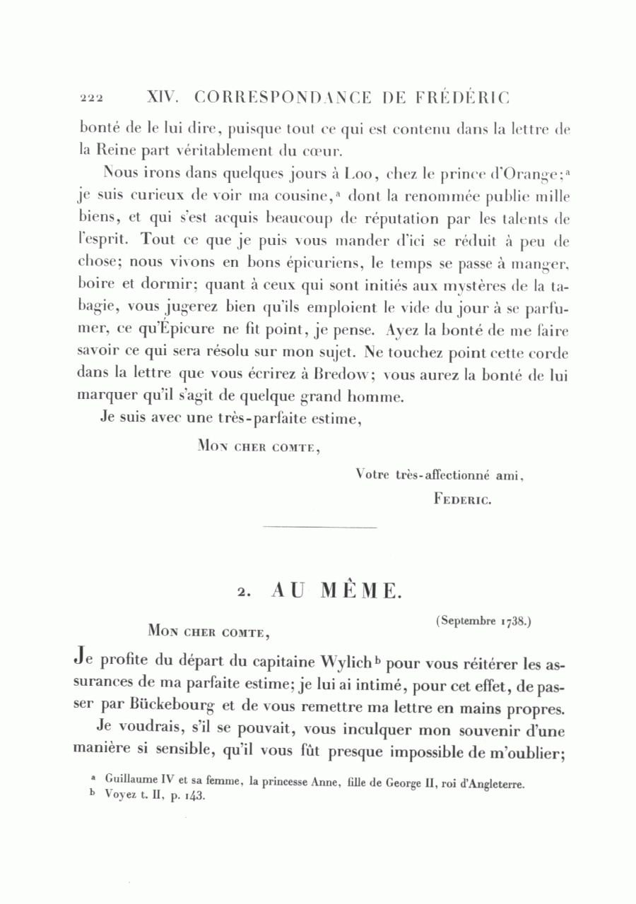 Correspondance de Frédéric avec le comte de Schaumbourg-Lippe