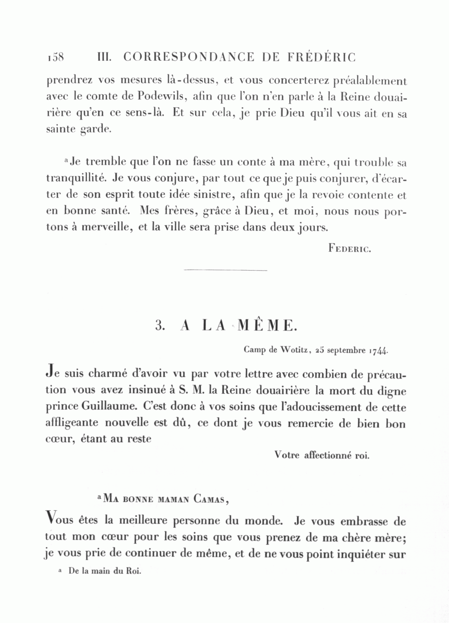 <158> prendrez vos mesures là-dessus, et vous concerterez préalablement avec le comte de Podewils, afin que l'on n'en parle à la Reine douairière qu'en ce sens-là. Et sur cela, je prie Dieu qu'il vous ait en sa sainte garde.