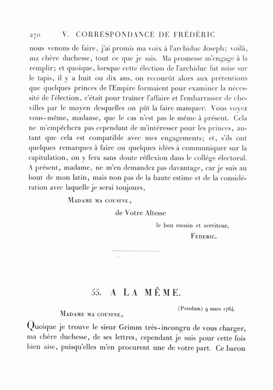 Frédéric à la duchesse de Saxe-Gotha, (Potsdam), 9 mars 1764Id: d385_ag509-18_006055000