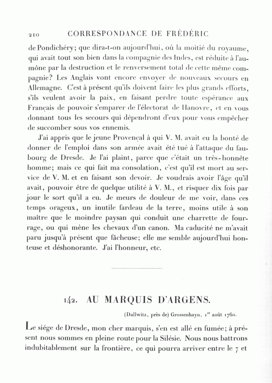 142. AU MARQUIS D'ARGENS.