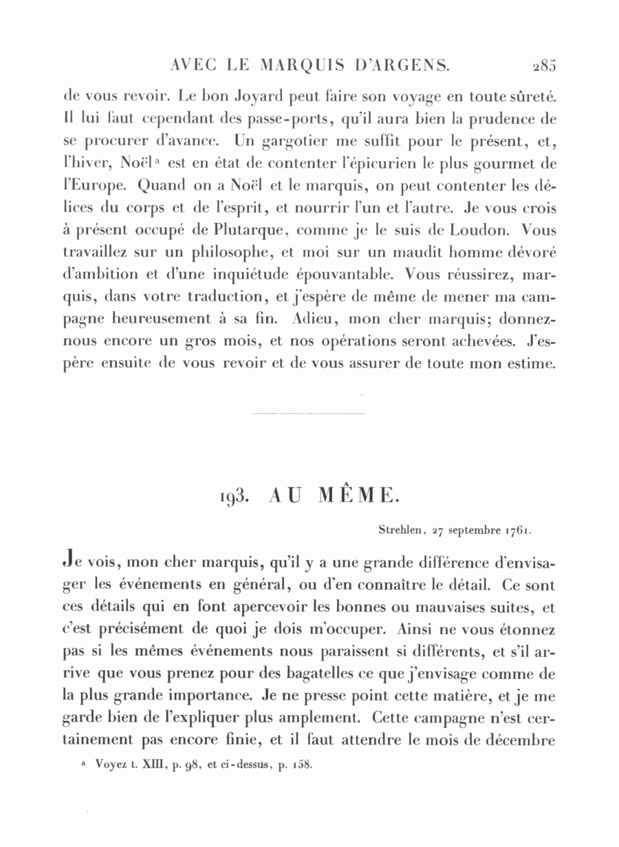 Frédéric au marquis d'Argens, Strehlen, 27 septembre 1761Id: d385_ag509-19_002193000