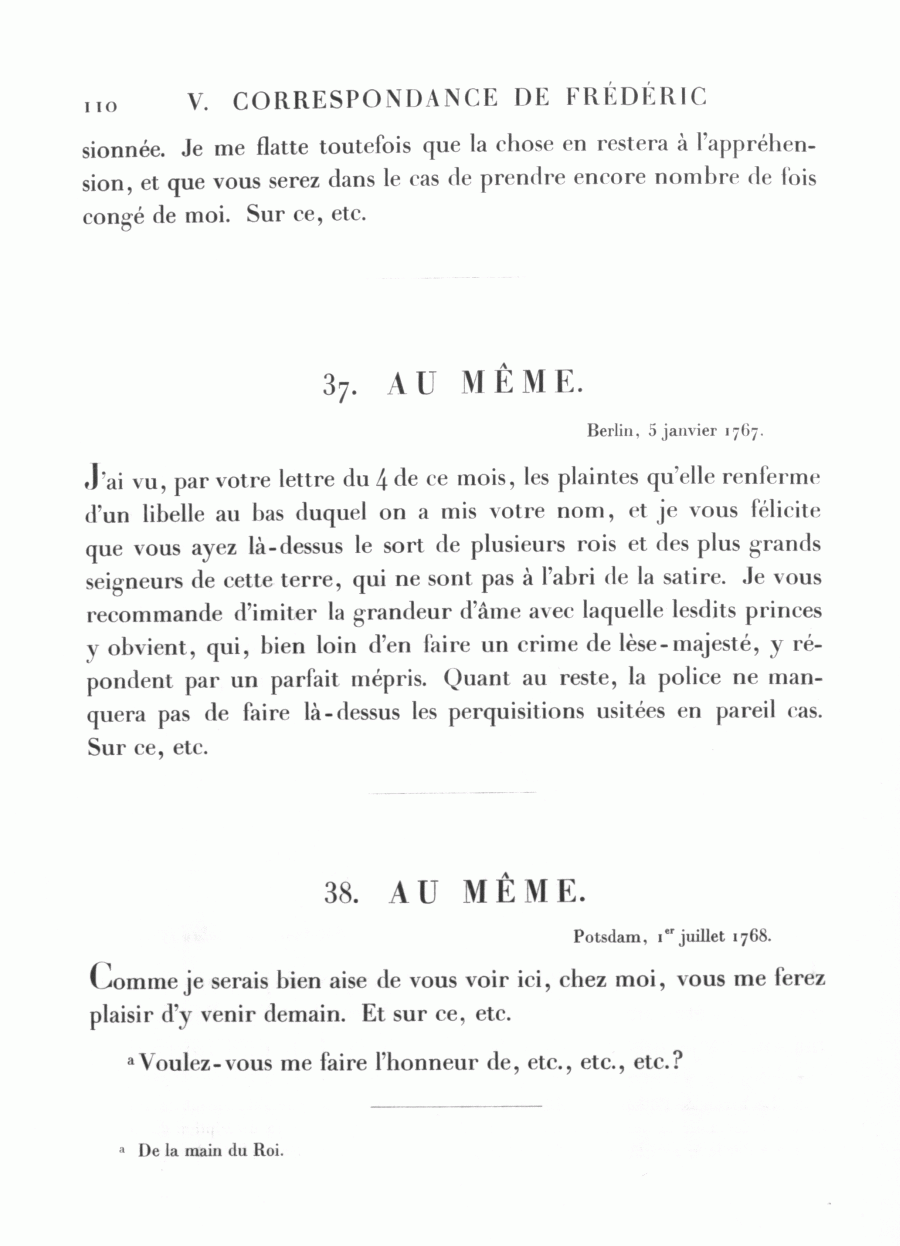 Comme je serais bien aise de vous voir ici, chez moi, vous me ferez plaisir d'y venir demain. Et sur ce, etc.