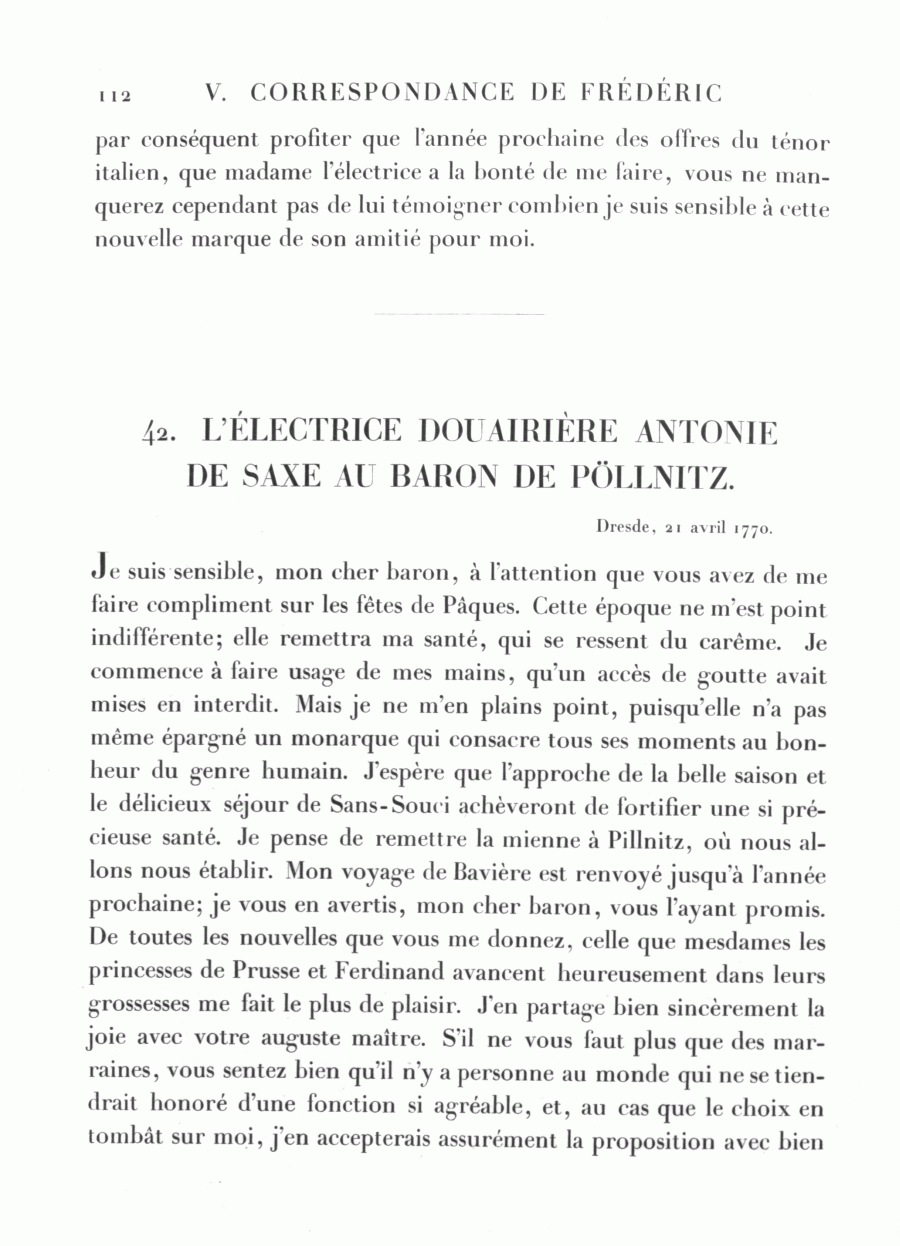 42. L'ÉLECTRICE DOUAIRIÈRE ANTONIE DE SAXE AU BARON DE PÖLLNITZ.