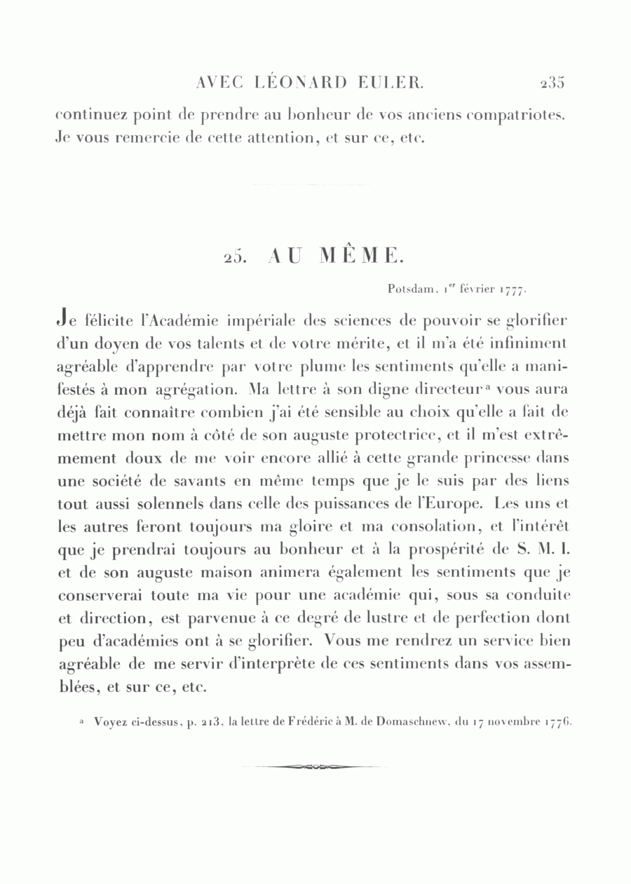 a Voyez ci-dessus, p. 213, la lettre de Frédéric à M. de Domaschnew, du 17 novembre 1776.