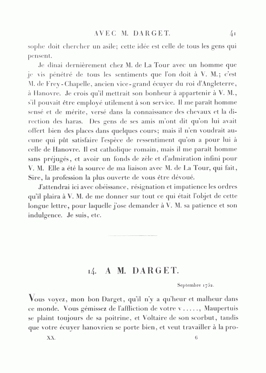 Correspondance de Frédéric avec M. Darget (mai 1749 - 6 septembre 1771)