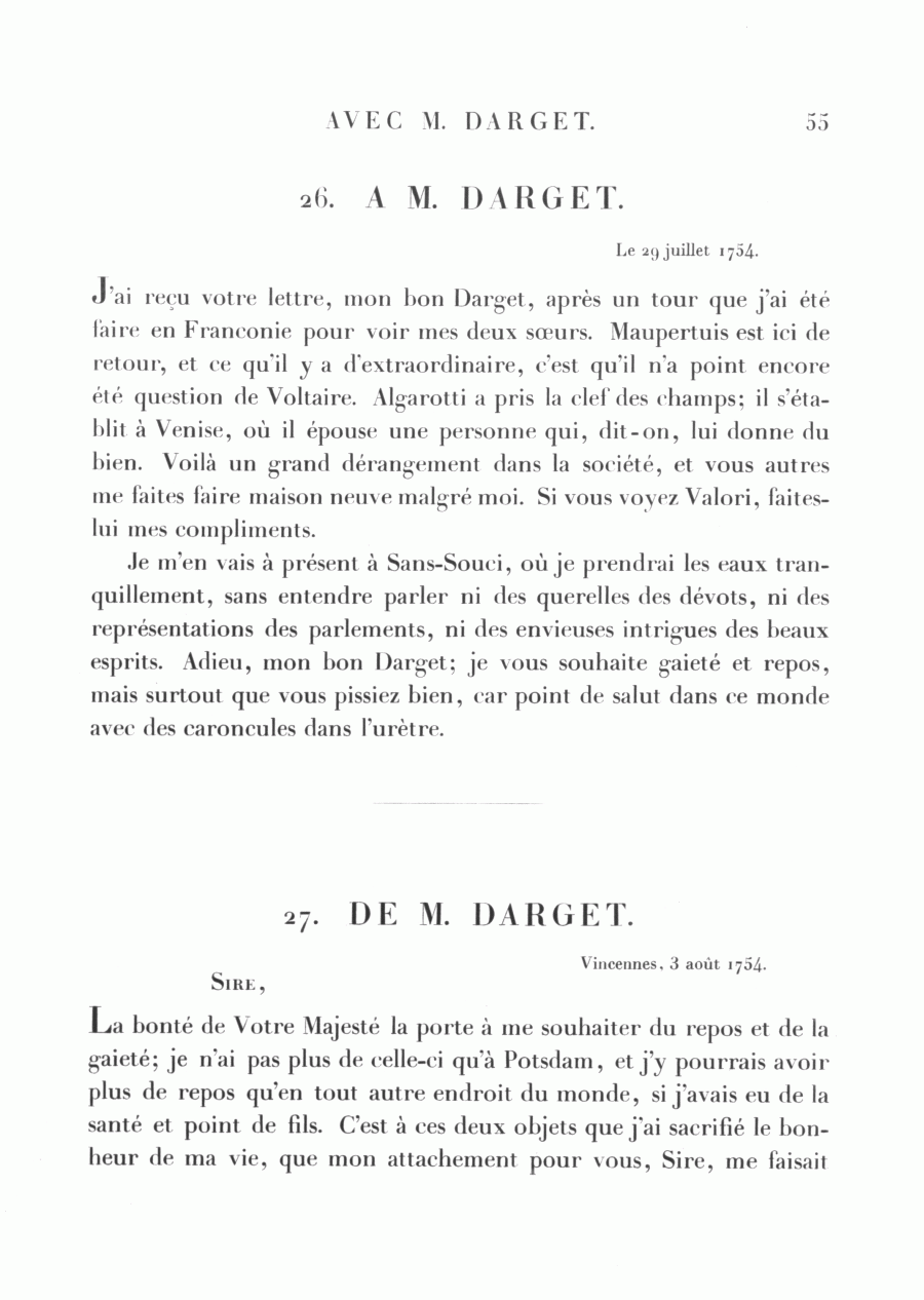 Correspondance de Frédéric avec M. Darget (mai 1749 - 6 septembre 1771)