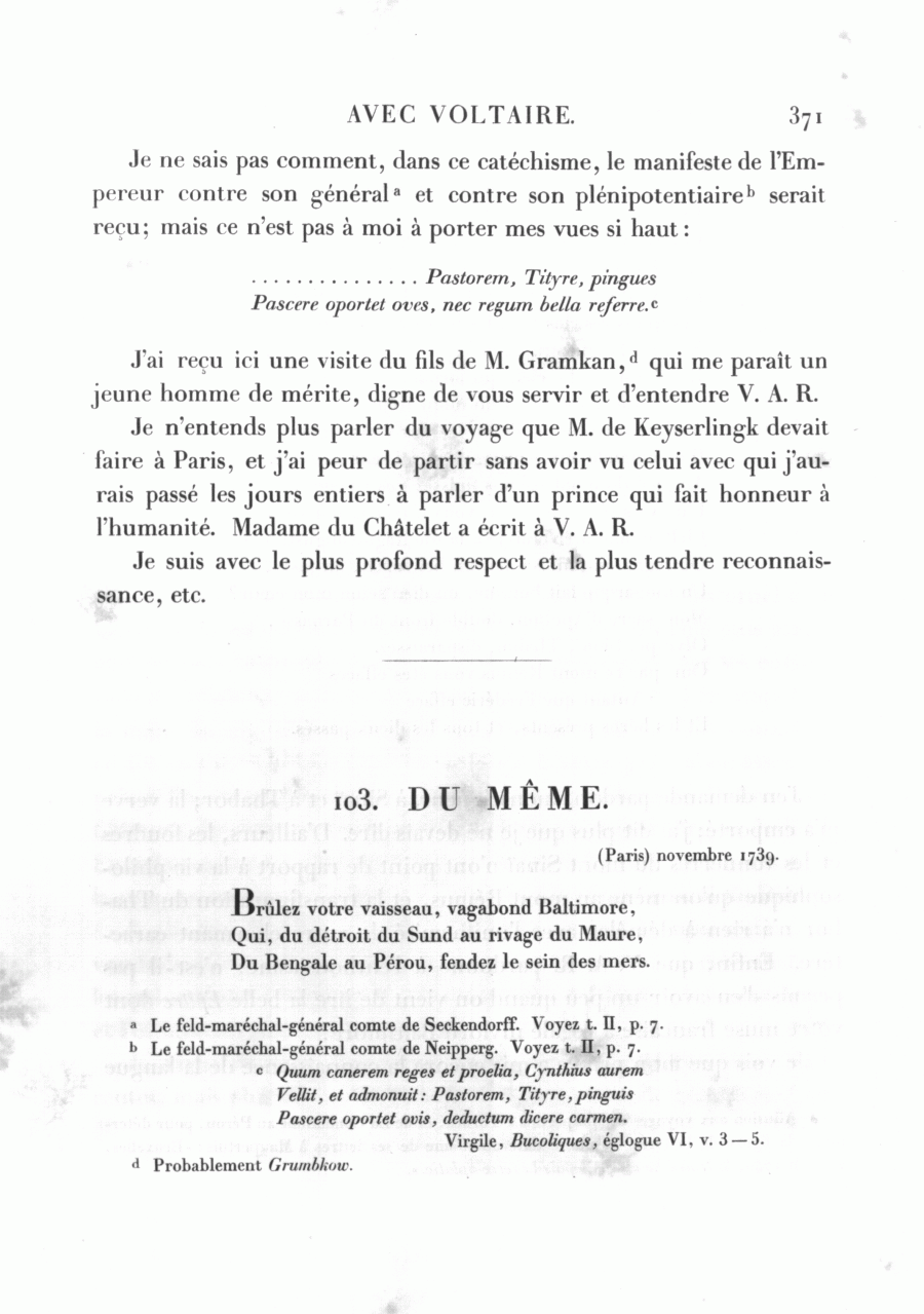 , églogue VI, v. 3-5.d Probablement Grumbkow.