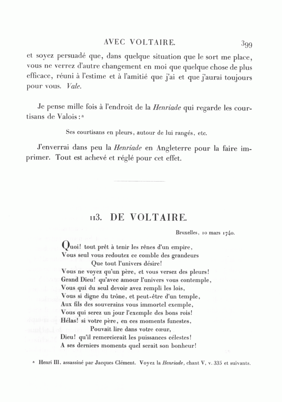 Je pense mille fois à l'endroit de la Henriade qui regarde les courtisans de Valois :a