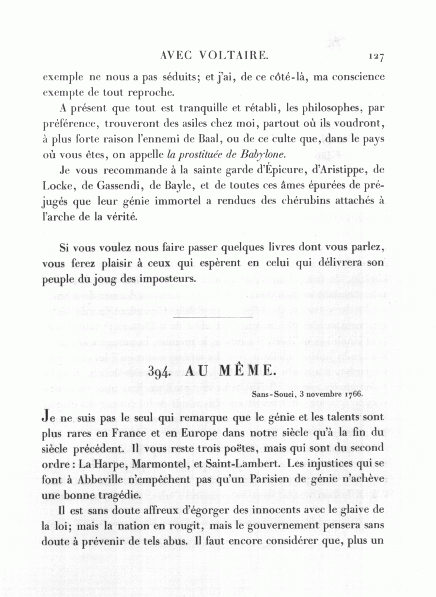 Frédéric à Voltaire, Sans-Souci, 3 novembre 1766Id: d385_ag509-23_001064000