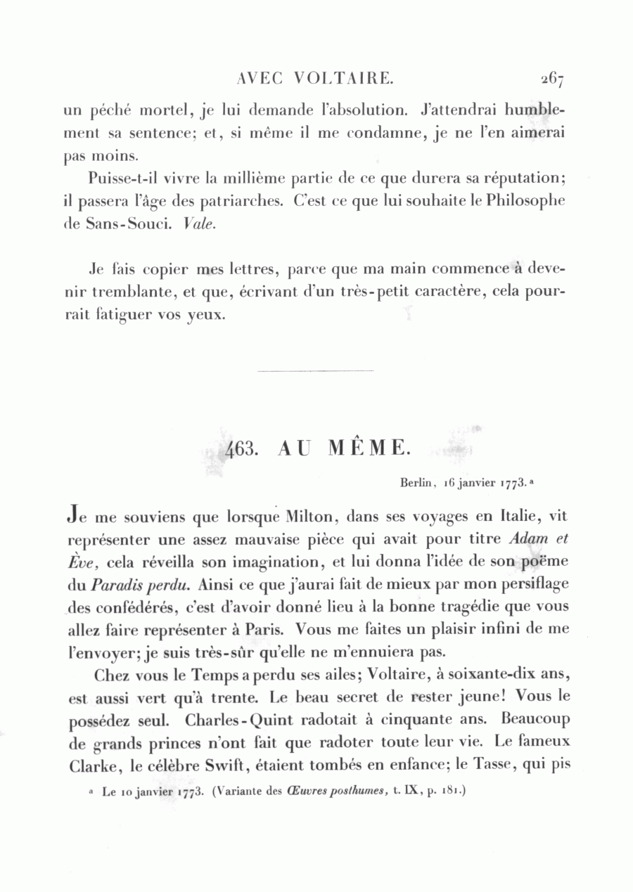 Frédéric à Voltaire, Berlin, 16 (10) janvier 1773Id: d385_ag509-23_001133000