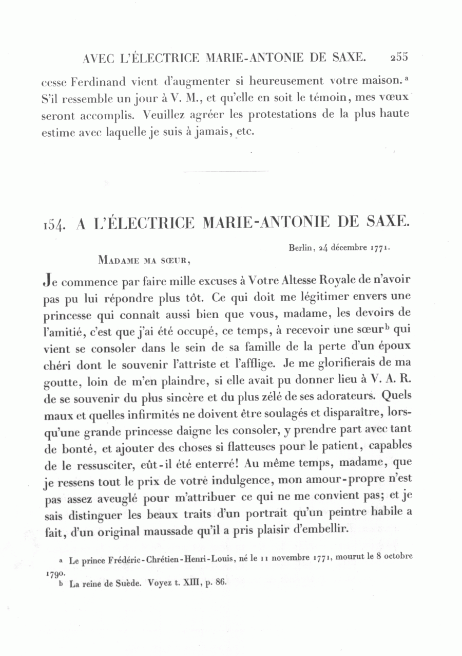<255>cesse Ferdinand vient d'augmenter si heureusement votre maison.a S'il ressemble un jour à V. M., et qu'elle en soit le témoin, mes vœux seront accomplis. Veuillez agréer les protestations de la plus haute estime avec laquelle je suis à jamais, etc.