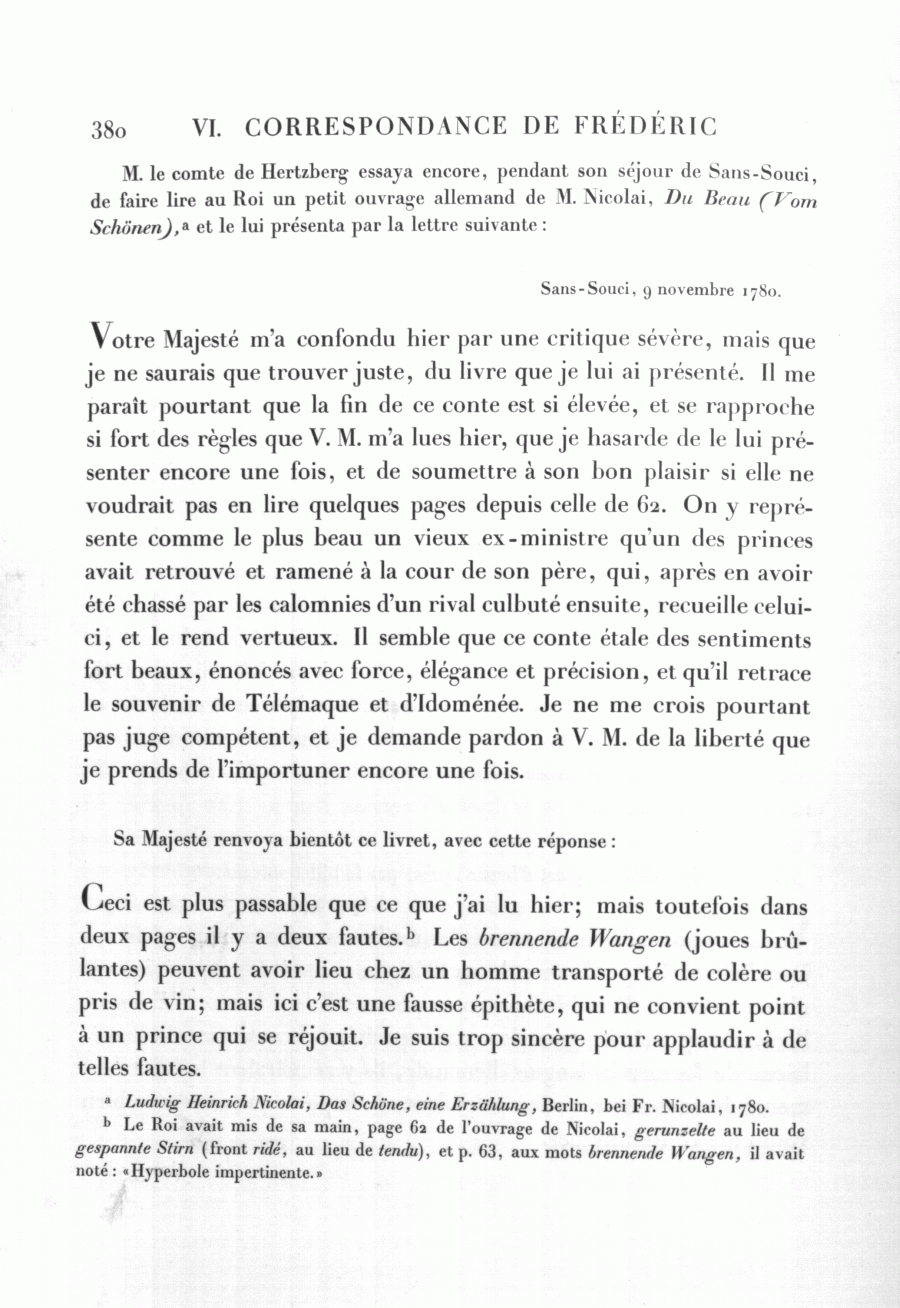 M. de Hertzberg à Frédéric, Sans-Souci, 9 novembre 1780Id: d385_ag509-24_007005000