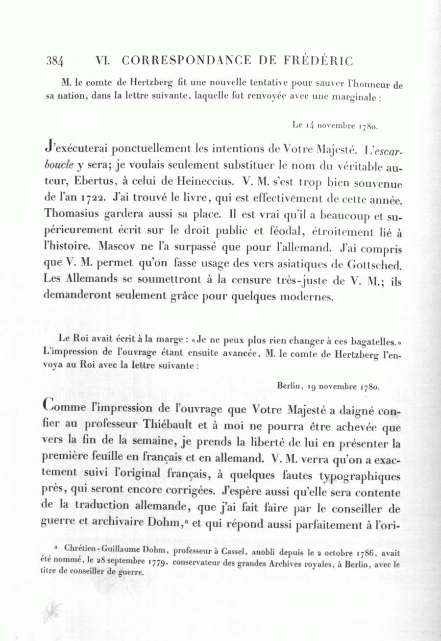 a Chrétien-Guillaume Dohm, professeur à Cassel, anobli depuis le 2 octobre 1786, avait été nommé, le 28 septembre 1779, conservateur des grandes Archives royales, à Berlin, avec le titre de conseiller de guerre.
