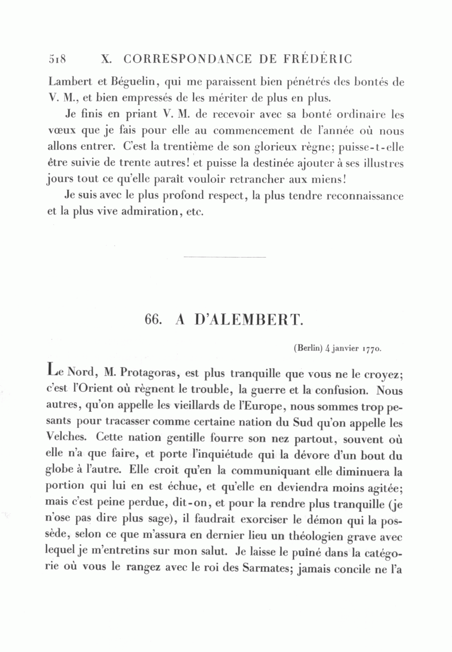 Frédéric à d'Alembert, (Berlin), 4 janvier 1770Id: d385_ag509-24_011066000