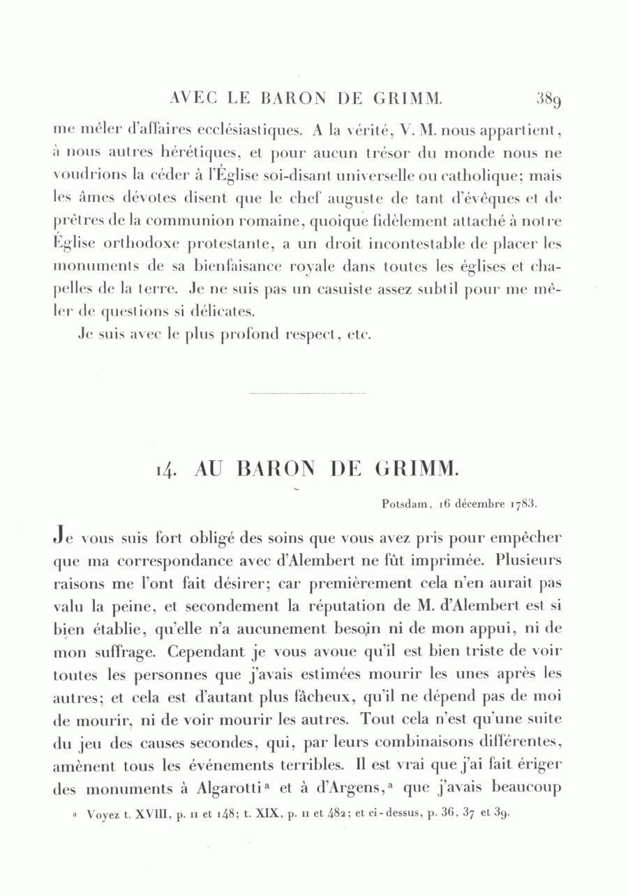 14. AU BARON DE GRIMM.
