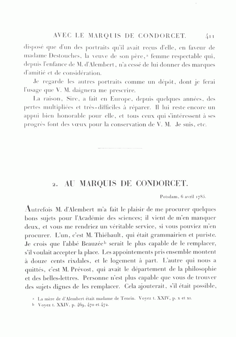 Frédéric au marquis de Condorcet, Potsdam, 6 avril 1785Id: d385_ag509-25_010002000