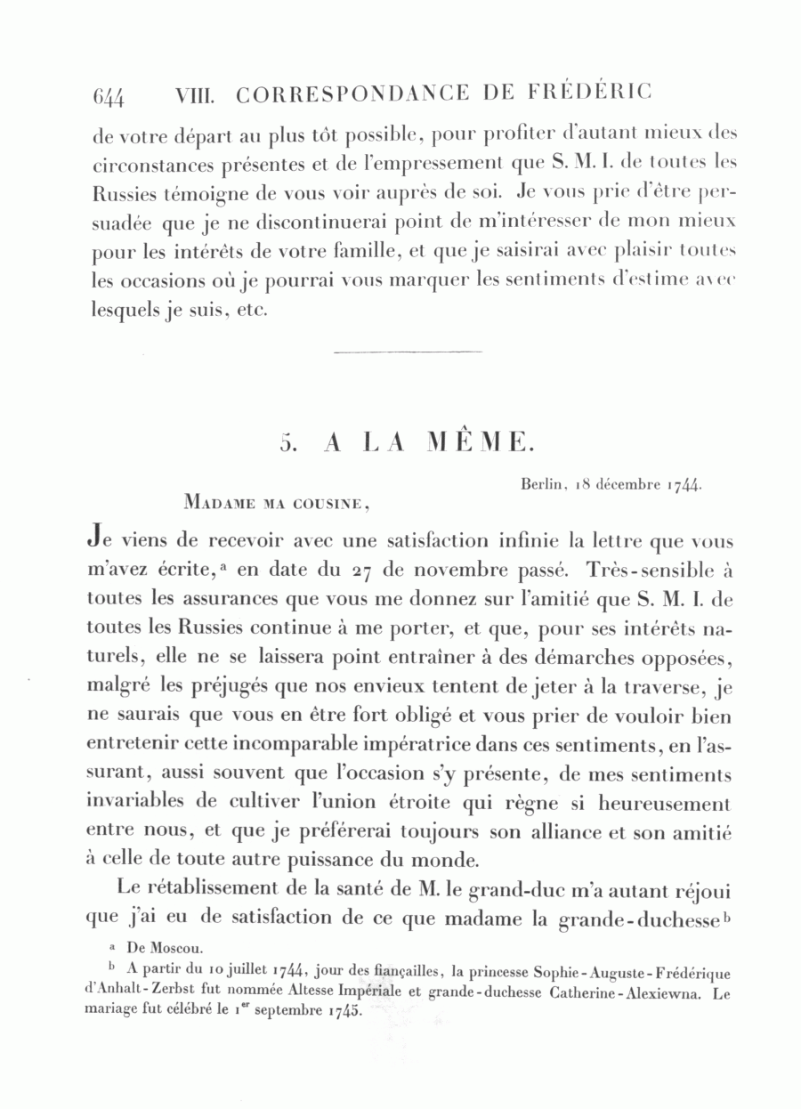 b A partir du 10 juillet 1744, jour des fiançailles, la princesse Sophie-Auguste-Frédérique d'Anhalt-Zerbst fut nommée Altesse Impériale et grande-duchesse Catherine-Alexiewna. Le mariage fut célébré le 1er septembre 1745.