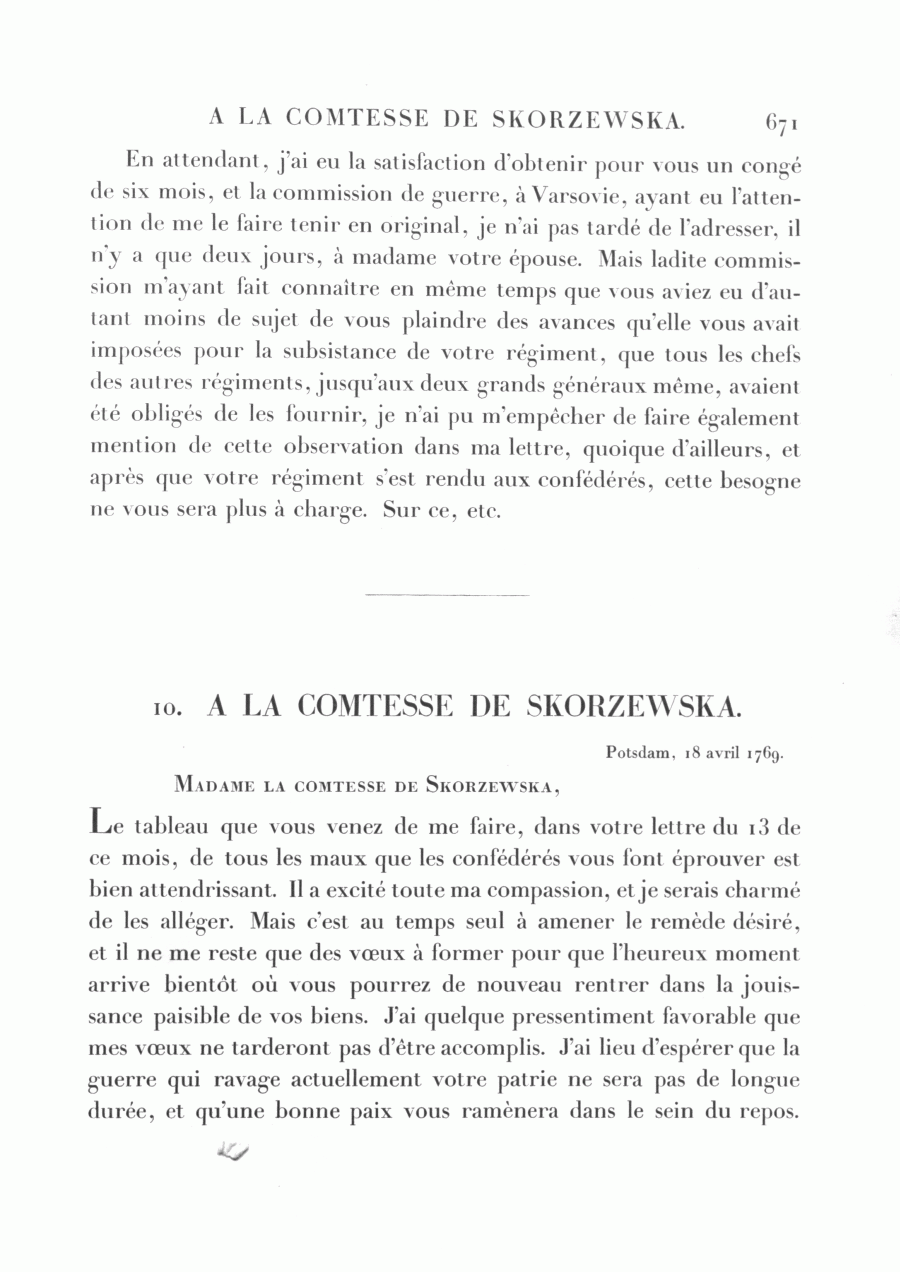 Frédéric à la comtesse de Skorzewska, Potsdam, 18 avril 1769Id: d385_ag509-25_012013010