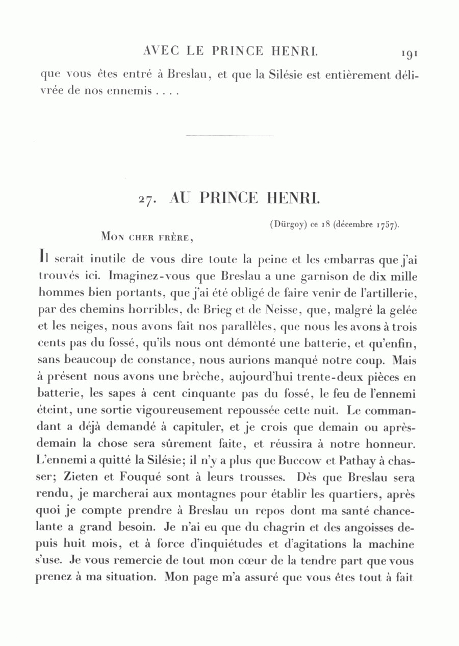 <191> que vous êtes entré à Breslau, et que la Silésie est entièrement délivrée de nos ennemis ....