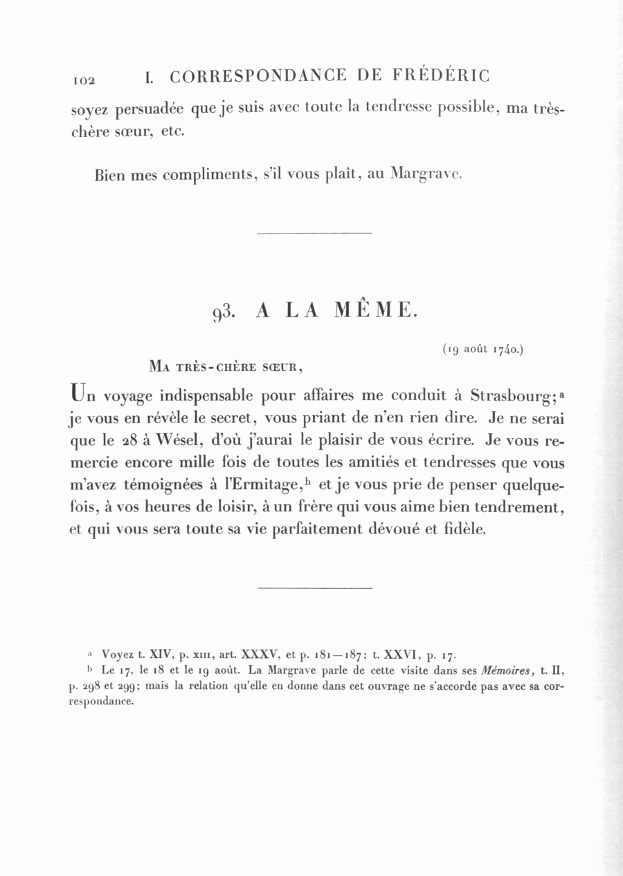 Correspondance de Frédéric avec sa sœur Wilhelmine, margrave de Baireuth