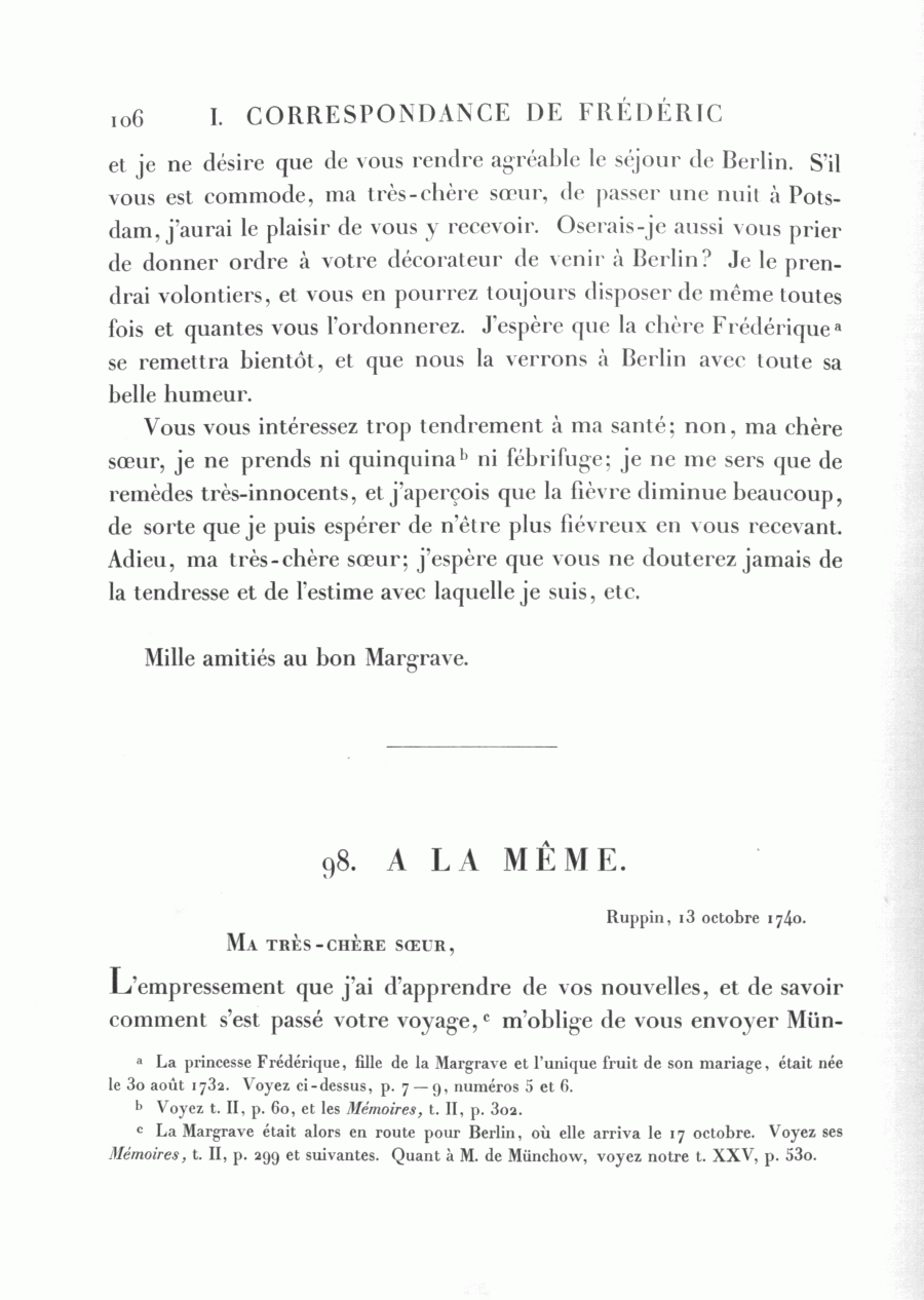 Frédéric à la margrave de Baireuth, Ruppin, 13 octobre 1740Id: d385_ag509-27_1_002098000
