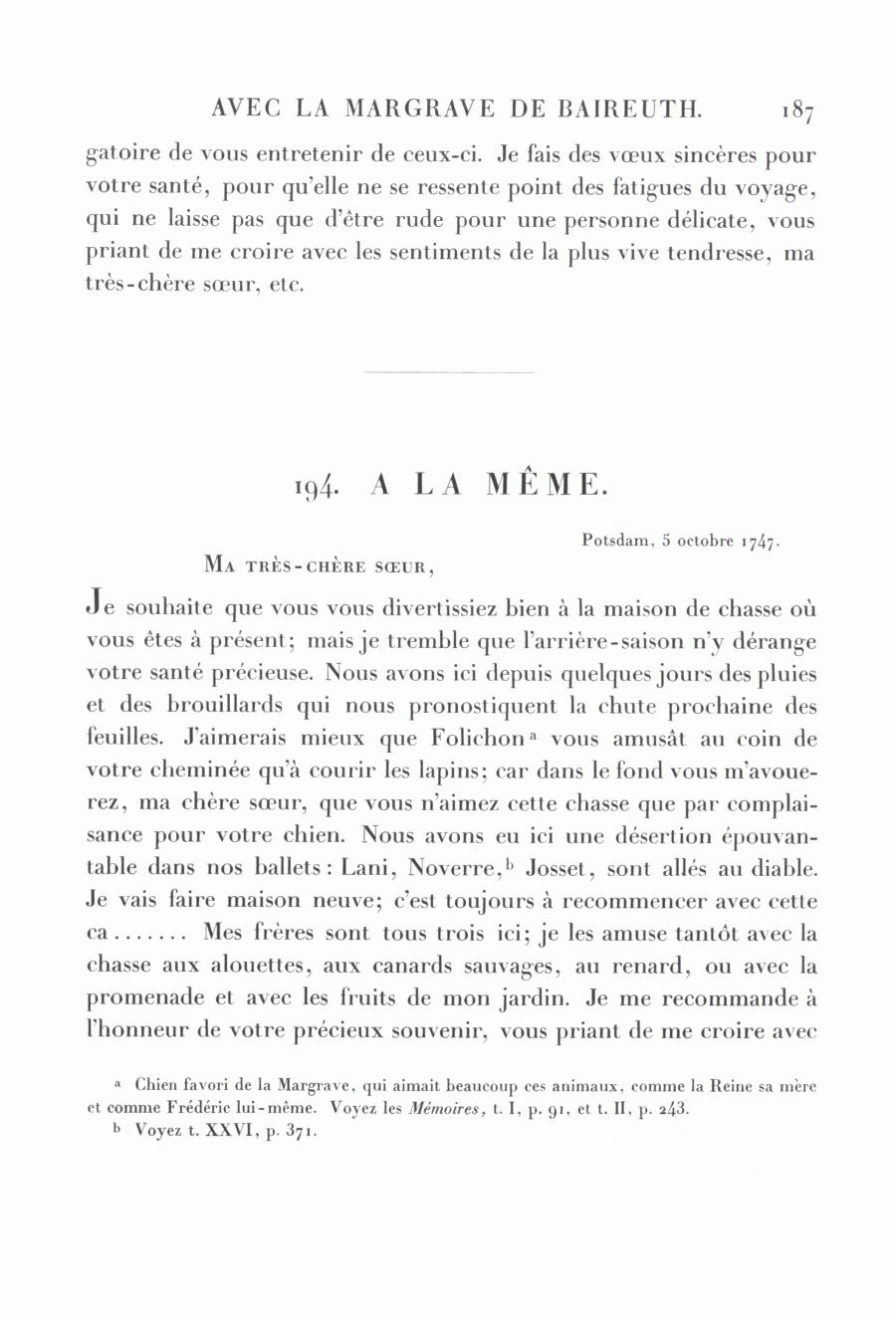 Frédéric à la margrave de Baireuth, Potsdam, 5 octobre 1747Id: d385_ag509-27_1_002194000