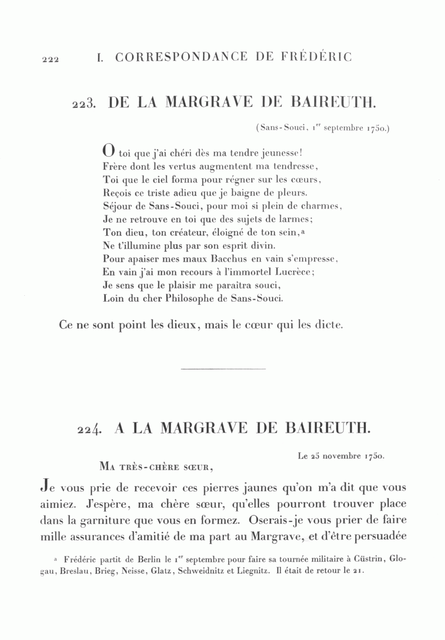 a Frédéric partit de Berlin le 1er septembre pour faire sa tournée militaire à Cüstrin, Glogau, Breslau, Brieg, Neisse, Glatz, Schweidnitz et Liegnitz. Il était de retour le 21.