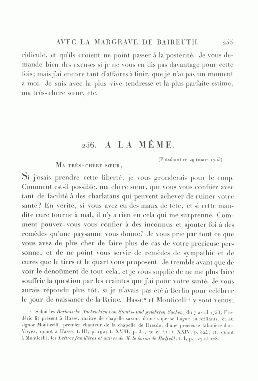 Frédéric à la margrave de Baireuth, (Potsdam), ce 29 (mars 1753)Id: d385_ag509-27_1_002256000