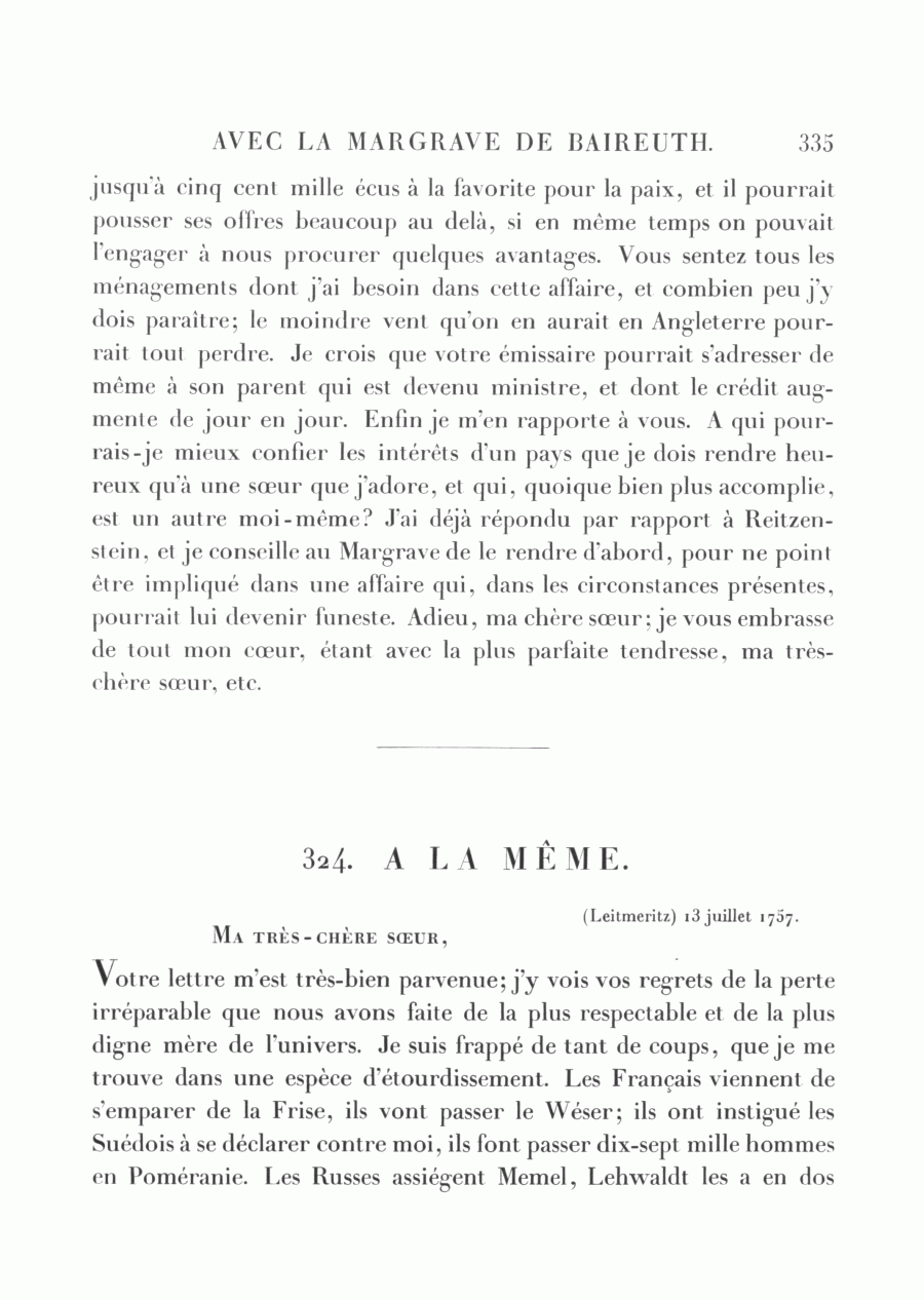 Correspondance de Frédéric avec sa sœur Wilhelmine, margrave de Baireuth