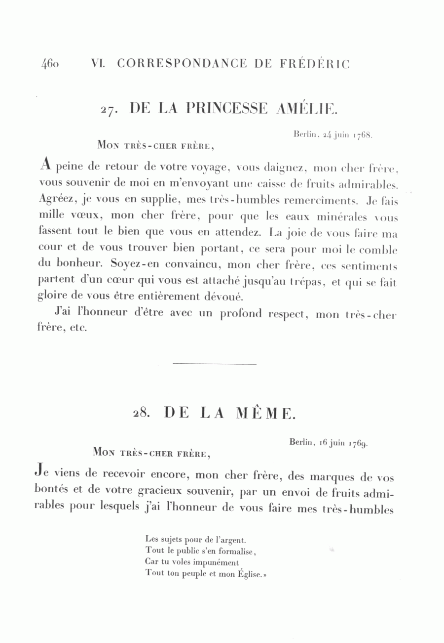 Correspondance de Frédéric avec sa sœur Amélie, abbesse de Quedlinbourg