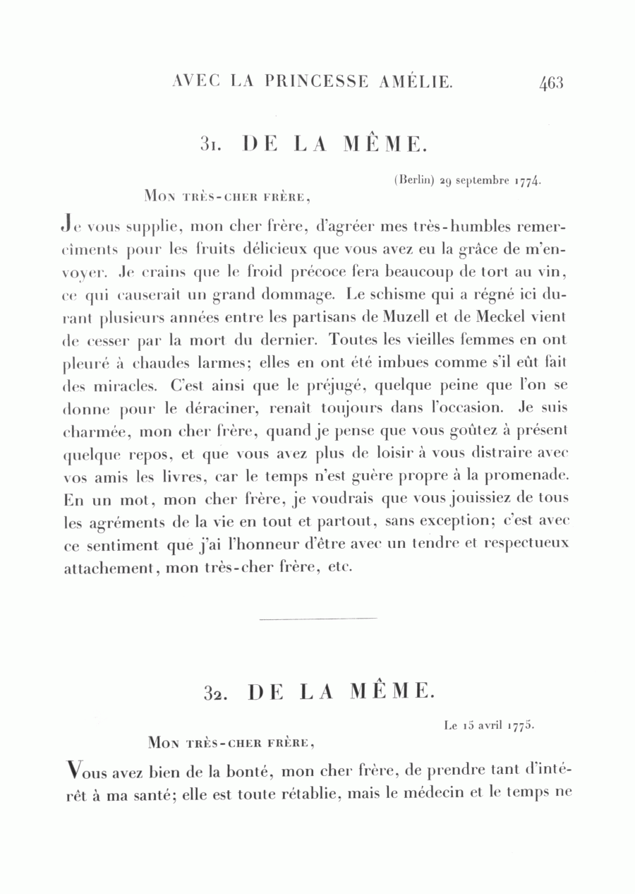 Correspondance de Frédéric avec sa sœur Amélie, abbesse de Quedlinbourg