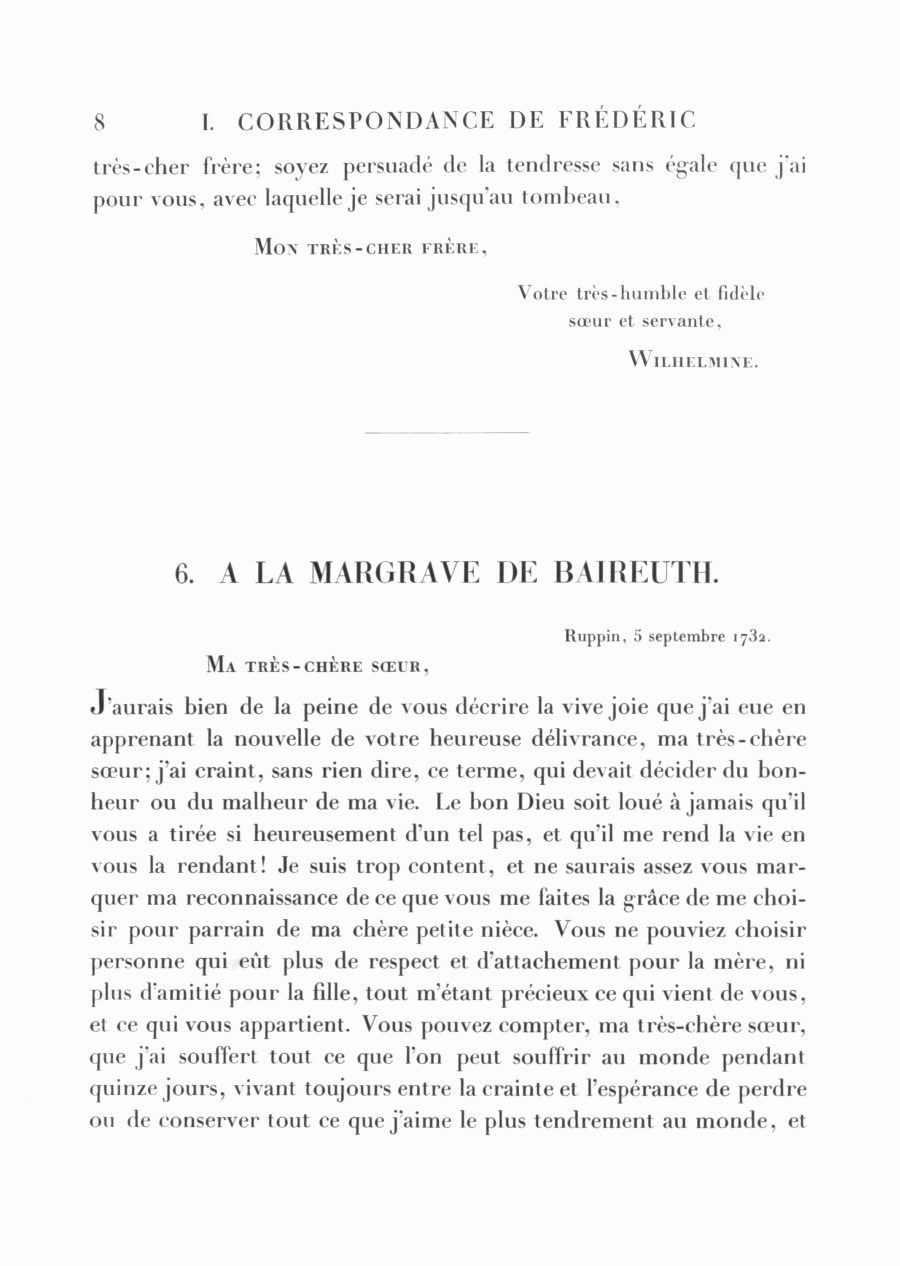 <8> très-cher frère; soyez persuadé de la tendresse sans égale que j'ai pour vous, avec laquelle je serai jusqu'au tombeau.