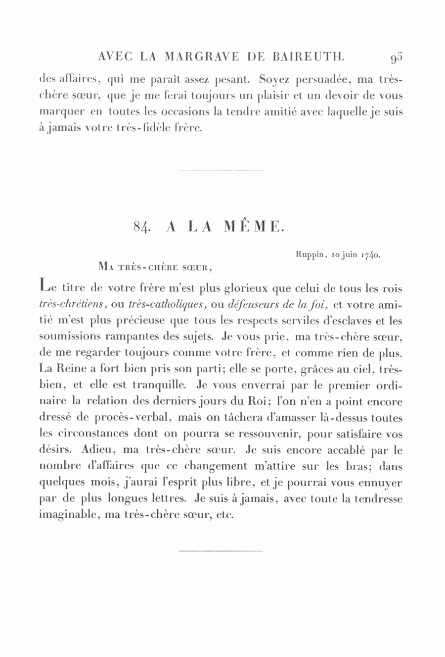 <95> des affaires, qui me paraît assez pesant. Soyez persuadée, ma très-chère sœur, que je me ferai toujours un plaisir et un devoir de vous marquer en toutes les occasions la tendre amitié avec laquelle je suis à jamais votre très-fidèle frère.