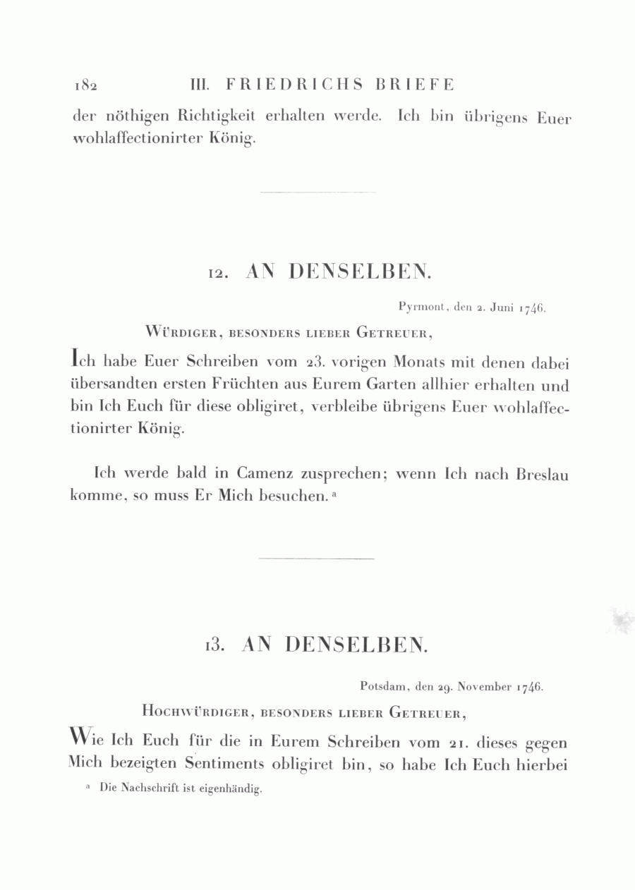 <182> der nöthigen Richtigkeit erhalten werde. Ich bin übrigens Euer wohlaffectionirter König.