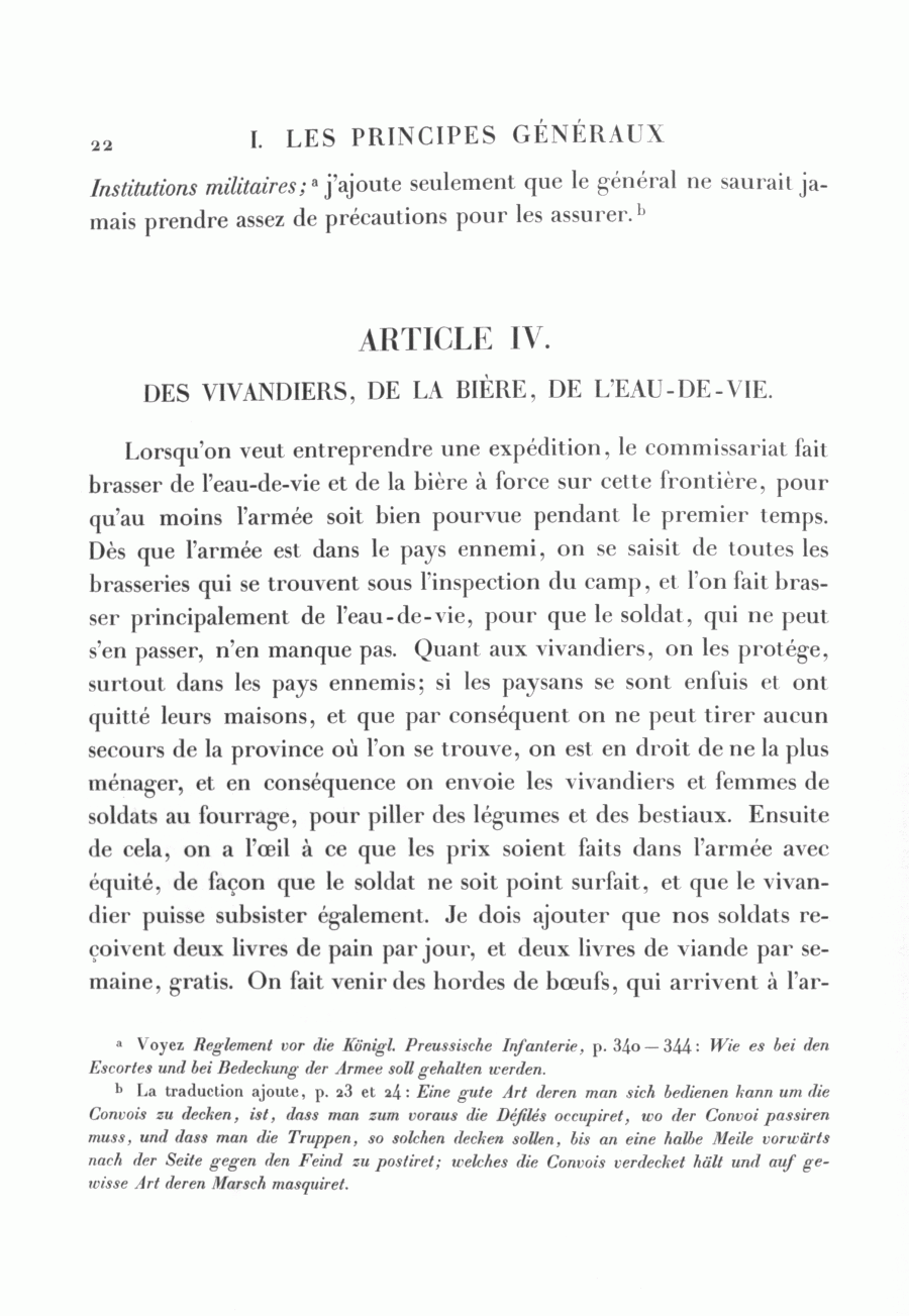 <22> Institutions militaires;a j'ajoute seulement que le général ne saurait jamais prendre assez de précautions pour les assurer.b
