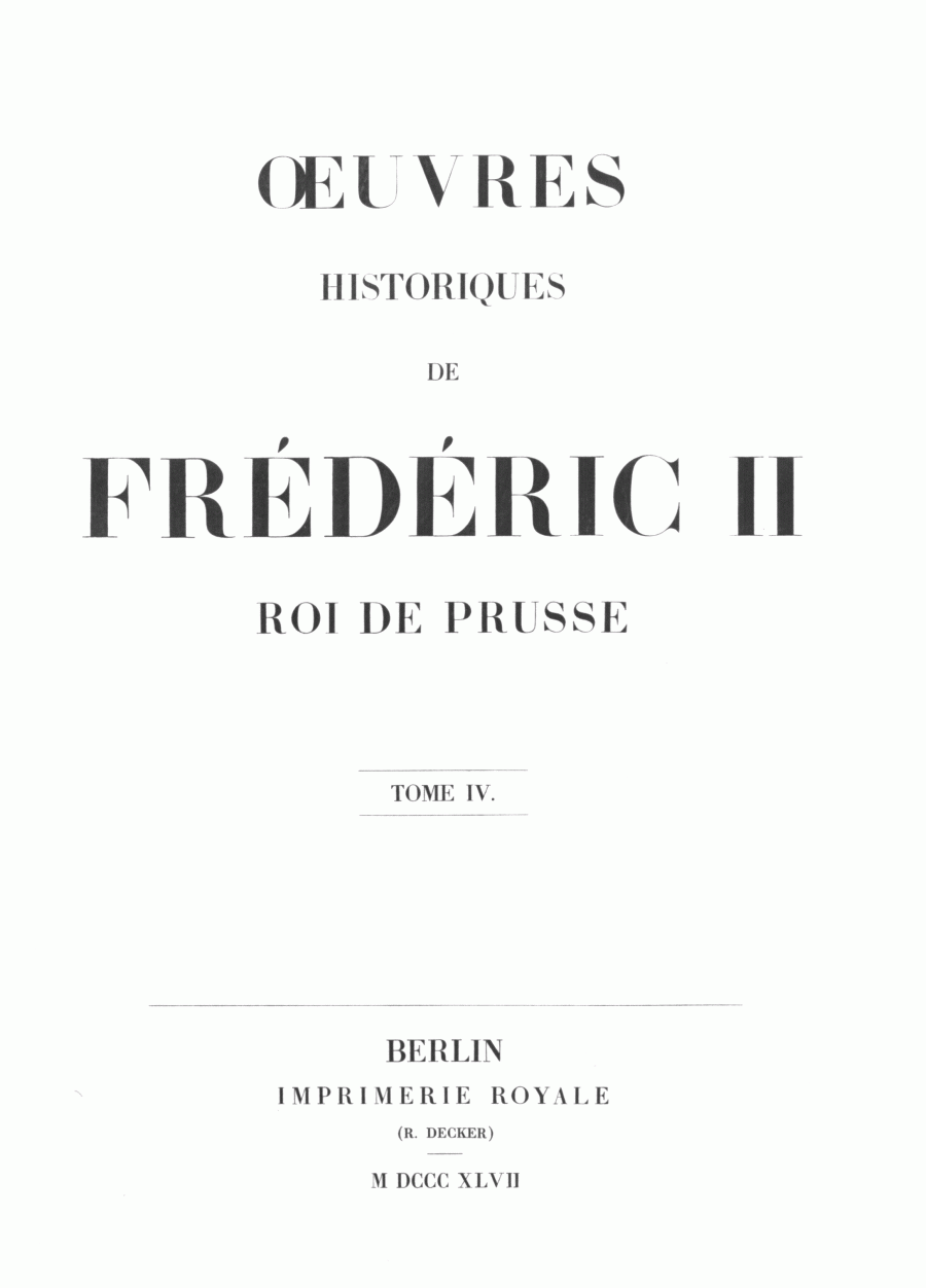 ŒUVRES HISTORIQUES DE FRÉDÉRIC II ROI DE PRUSSE TOME IV.