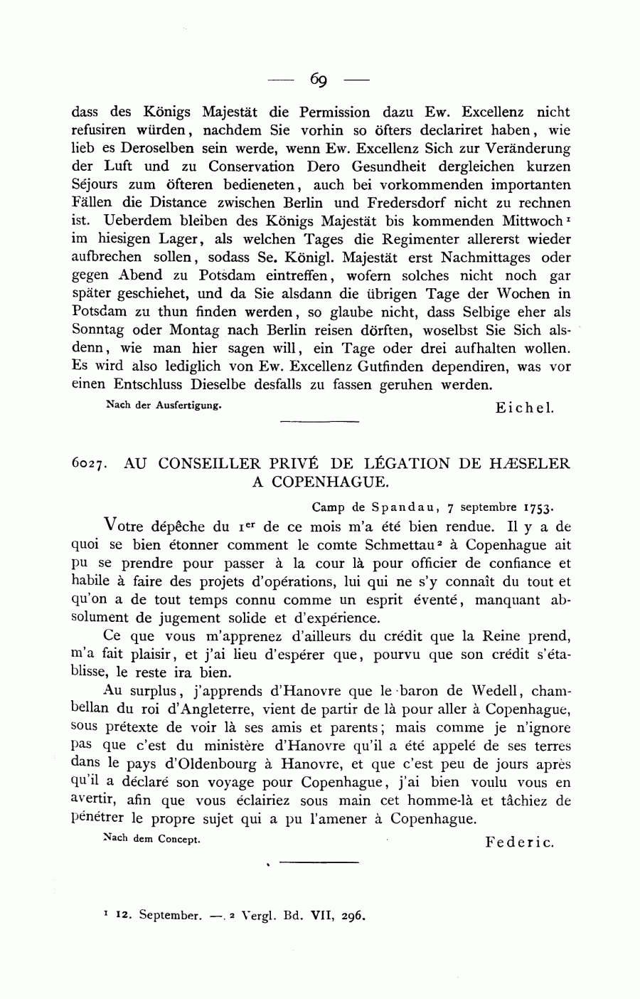 6027. Au conseiller privé de légation de Hæseler à Copenhague