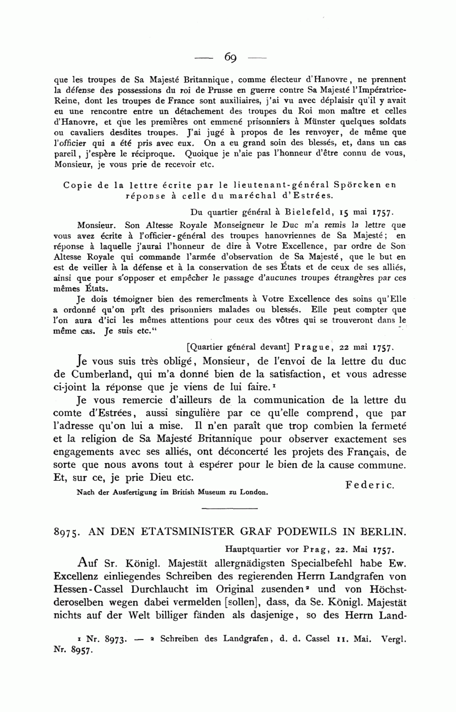 8975. AN DEN ETATSMINISTER GRAF PODEWILS IN BERLIN.