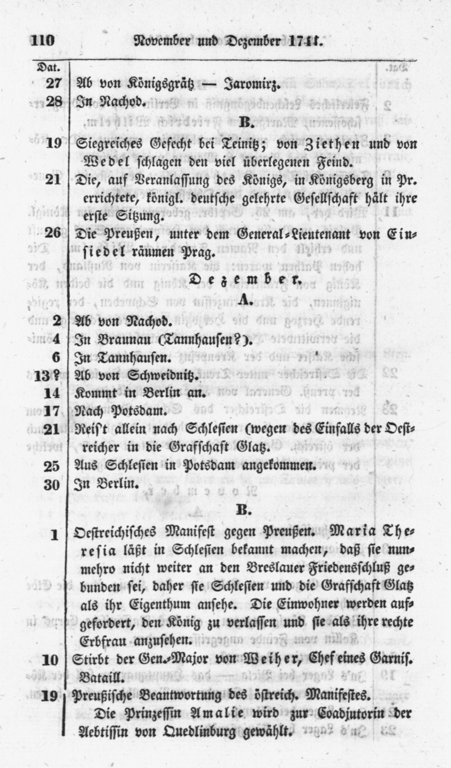 Östreichisches Manifest gegen Preußen. Maria Theresia läßt in Schlesien bekannt machen, daß sie nunmehro nicht weiter an den Breslauer Friedensschluß gebunden sei, daher sie Schlesien und die Grafschaft Glatz als ihr Eigenthum ansehe. Die Einwohner werden aufgefordert, den König zu verlassen und sie als ihre rechte Erbfrau anzusehen.